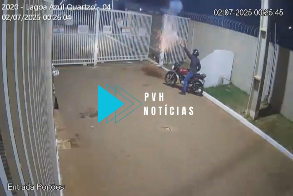 Um dos suspeitos ainda dispara fogos de artifício, em seguida os indivíduos fogem.