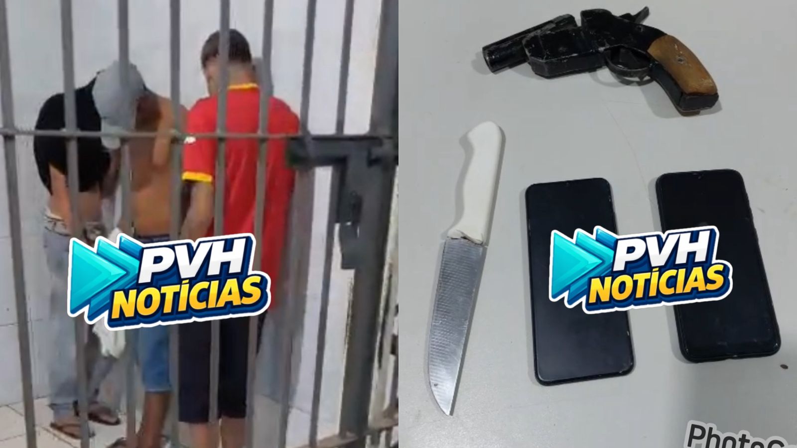 Segundo a PM, uma guarnição que fazia patrulhamento pela Avenida Calama com Rua México, bairro Embratel, avistou o trio em duas bicicletas em atitudes suspeitas e fez a abordagem.